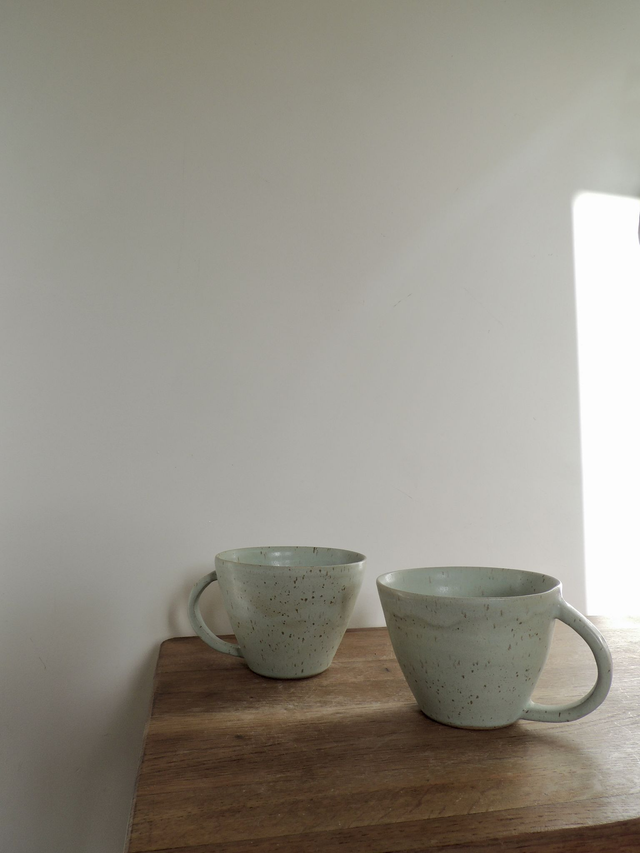 Finished in my Seafoam glaze on a Speckled Buff Stoneware clay.