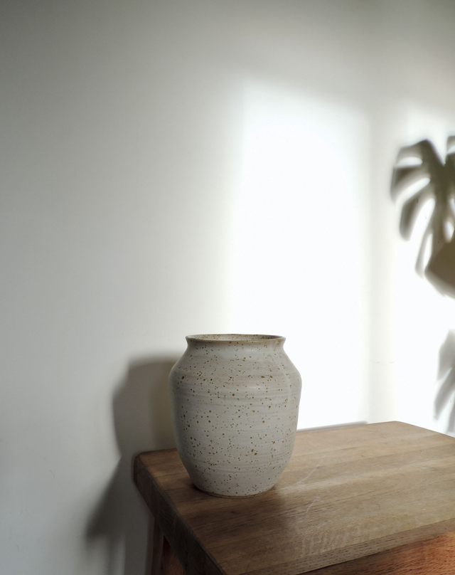 Finished in an Almond glaze on a speckled buff stoneware clay.